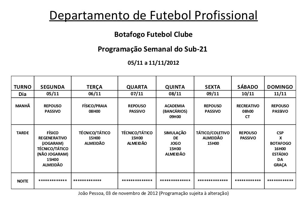 Botafogo PB - Sub-21 - Programação - 05 a 11 nov 2012